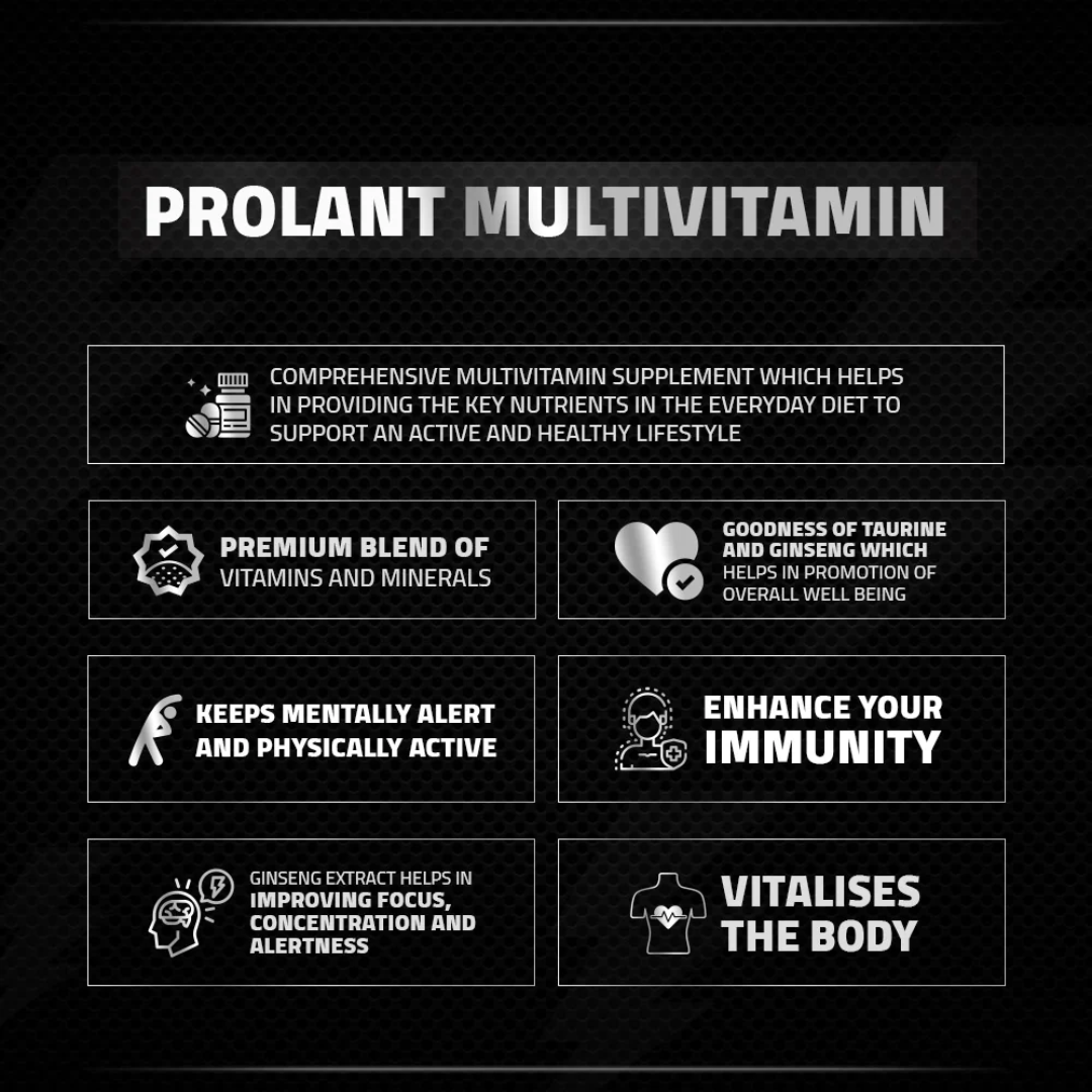 A comprehensive multivitamin supplement – Prolant Multivitamin contains a blend of over 27 vitamins and minerals for holistic mental and physical health. It is an effortless way of achieving your daily micronutrient requirements and living an active lifestyle.